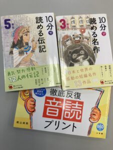 小学生コースでは、生徒それぞれに個別にカリキュラムを設定しますが、多くの生徒に入室直後に取り組んでもらうのが音読の練習です。10分間、できる限り声に出して読むことを徹底しています。